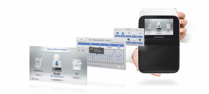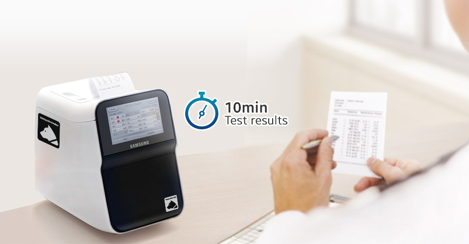 Всего за 7-10 минут Samsung PT10V определяет до 16 параметров с предварительно настроенными тестовыми картриджами.