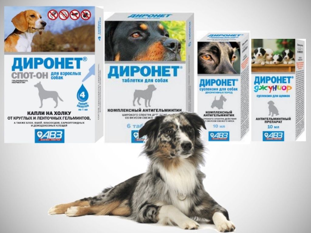 Одним из распространённых препаратов для лечения и профилактики от паразитов считается «Диронет». Он выпускается в виде табелток и суспензии.