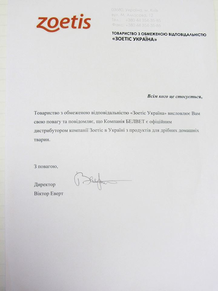 Компания Белвет стала официальным дистрибьютором компании Зоетис в Украине!