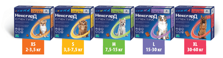 НексгарД Спектра предназначен для ежемесячного использования собакам старше 8 недель и весом более 2 килограмм.