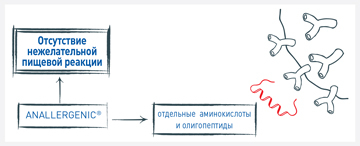 ANALLERGENIC производится на основе использования инновационного источника белка (гидролизат перьевой муки), в котором почти 90% белков гидролизировано до максимально маленьких частиц (отдельные аминокислоты).