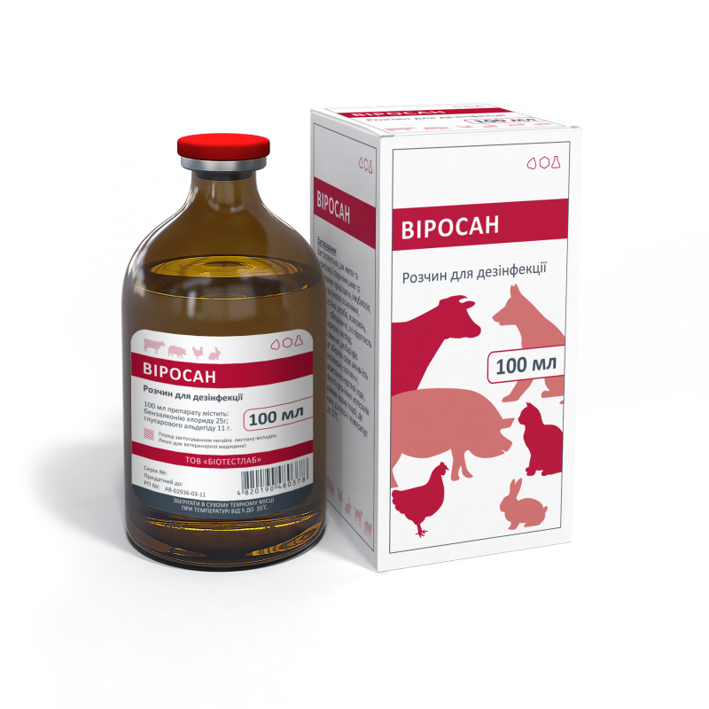 Виросан – препарат для дезинфекции помещений пролонгированного воздействия. Уничтожает буквально все без исключения микроорганизмы (вирусы, грибки, кокцидии и бактерии, в том числе споровые). Прозрачный раствор от бледно-коричневого к тёмно-коричневого цвета с свойственным ароматом альдегида и отдушки.