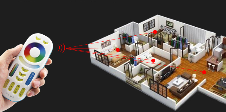 Пульт позволяет управлять источниками света и LED подсветкой с изменением яркости цветовой гаммы, насыщенности света и температуры свечения в пределах от 2700 до 6500 К, позволяет объединять источники света в группы и управлять источниками света как позонно (до 4-х зон), так и совместно задавая общую для всех зон настройку. Пульт имеет торцевую подсветку для легкого поиска в ночное время.