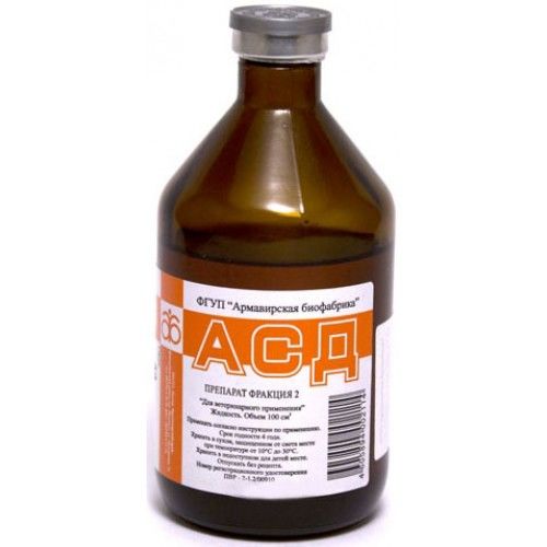 З метою стимуляції росту і розвитку телят, поросят і курчат препарат застосовують індивідуально в суміші з комбікормом з розрахунку 0,1 мл препарату АСД фракція 2 на 1 кг маси тіла через день протягом 1-2 міс.