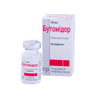 Засіб створено на основі бутарфанол тартрату (в 1 мл 10 мг). БУТОМІДОР є прозорий безбарвний розчин.
