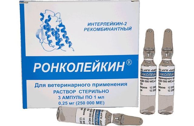 Ронколейкін ® вводять 1 раз в день підшкірно або внутрішньовенно крапельно по 0,5 - 1,0 мг з інтервалами 1 - 3 дня, на курс - 1 - 3 введення, з метою внутрішньовенного введення препарат з ампули переносять у 400 мл ізотонічного розчину натрію хлориду для ін'єкцій. Інфузія усього об'єму розчину здійснюється крапельно протягом 4-6 годин. Розчин речовини повинен бути безбарвним, прозорим і не містити сторонніх включень.